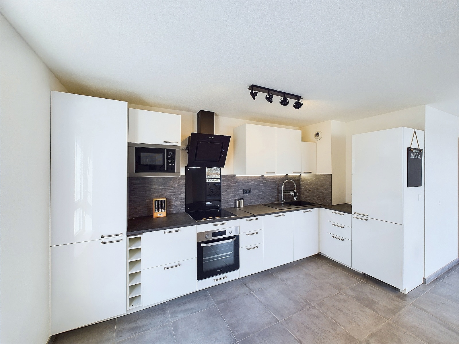 Vous y découvrirez une cuisine parfaitement équipée, fonctionnelle et aménagée avec électroménager haut de gamme : plaque de cuisson à induction, four, hotte, réfrigérateur et micro-ondes.