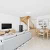 Au rez-de-chaussée, elle est composée d’une entrée avec placard aménagé, d’une cuisine semi-ouverte sur le séjour de 31,39m2 (carrez) et d’une salle d’eau équipée (vasque, sèche-serviette et WC intégré). A l’étage vous trouverez deux chambres à coucher confortables, une salle de bain entièrement équipée (meuble vasque, baignoire, sèche serviette et WC intégré) et un placard de rangement.